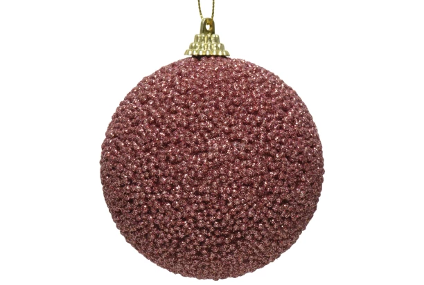 Sametově růžová vánoční koule o průměru 8 cm je ozdobena třpytivými korálky, které dodávají ozdobě poutavý, ale přesto decentní vzhled. Ideální dekorativní doplněk pro Váš vánoční stromeček.