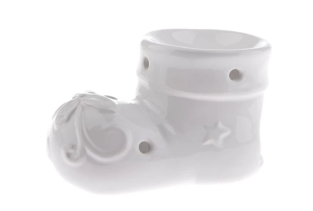 Bílá keramická aromalampa ve tvaru vánoční boty se zapálenou čajovou svíčkou a vonným olejem či voskem rozpuštěného ve vodě příjemně provoní Váš domov oblíbenou vůní. Vhodná k aromaterapii, ale také jako dekorace.