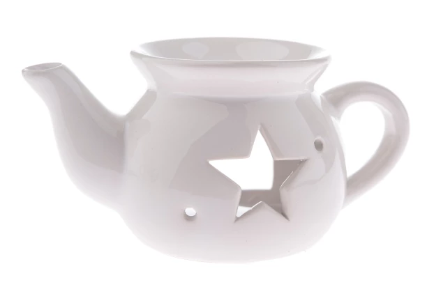 Bílá keramická aromalampa ve tvaru konvice se bude krásně vyjímat na poličce nebo na svátečně prostřeném stole. Plamen čajové svíčky bude prosvítat skrz otvor hvězdy, čímž se umocní kouzelná atmosféra Vánoc.