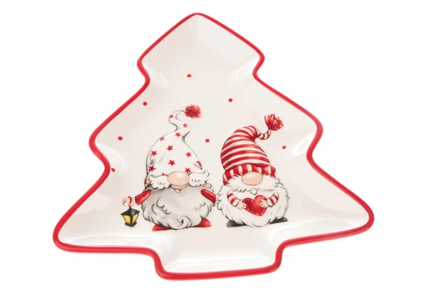 Stylový talíř ve tvaru stromku s vánočním motivem skřítků skvěle doplní svátečně prostřený stůl. Naservírované dobroty na tomto červeno-bílém talíři Vás zaručeně dostanou do té správné sváteční nálady.