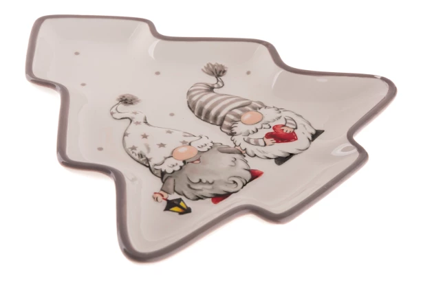 Stylový talíř ve tvaru stromku s vánočním motivem skřítků skvěle doplní svátečně prostřený stůl. Naservírované dobroty na tomto šedo-bílém talíři Vás zaručeně dostanou do té správné sváteční nálady.
