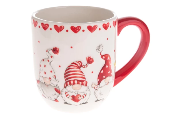 Vychutnejte si svou voňavou kávu nebo čaj v krásném hrnku s vánočním motivem skřítků a užijte si sváteční atmosféru plnými doušky. Červeno-bílý hrnek má objem 550 ml.