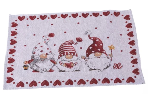 Elegantní textilní prostírání s vánočním motivem skřítků v červeno-bílém provedení skvěle ozdobí a ochrání Váš jídelní stůl a doladí sváteční atmosféru. Rozměr 48×33 cm.