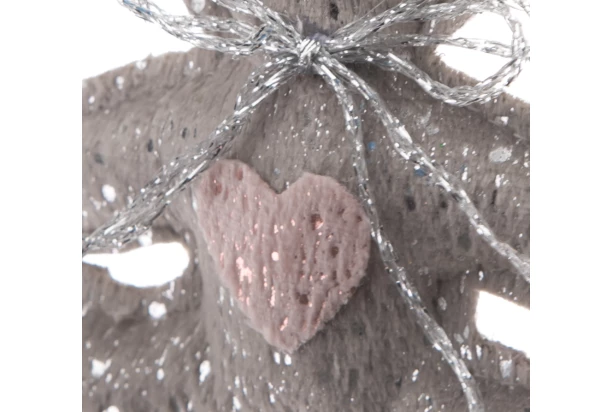 Vánoční závěsná dekorace ve tvaru medvídka z šedé látky se hodí jako ozdoba na stromek, ale lze s ní také ozdobit větvičku, věnec nebo dveře.