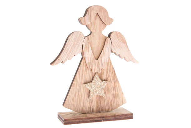 Jednoduchý, ale krásný dekorativní anděl s hvězdou je vyroben ze dřeva v přírodní barvě. Dekorace na podstavci dokonale zapadne do každého prostředí a skvěle doladí zimní i vánoční atmosféru. Výška 13 cm.