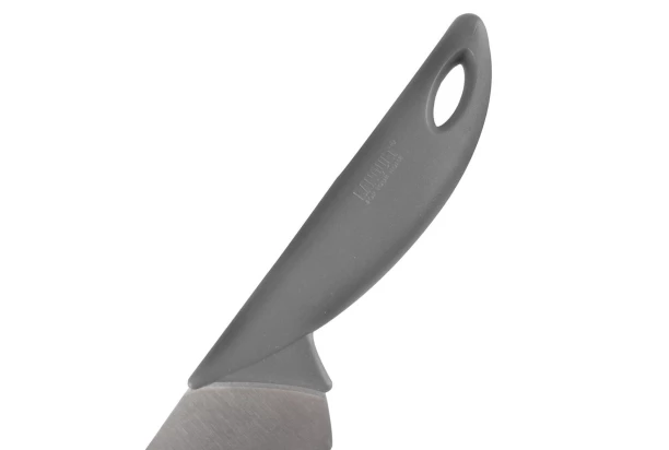 Kuchařský nůž s délkou ostří 17 cm má plastovou rukojeť v šedé barvě a je nepostradatelným pomocníkem v každé kuchyni.