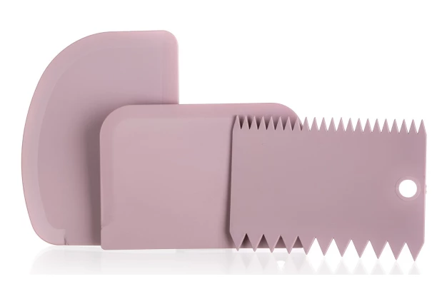 Sada obsahuje 3 kuchyňské stěrky o různých tvarech a velikostech, které jsou ideální pro míchání a roztírání krémů a zdobení dortů. Dodáváno v růžové nebo krémové barvě.
