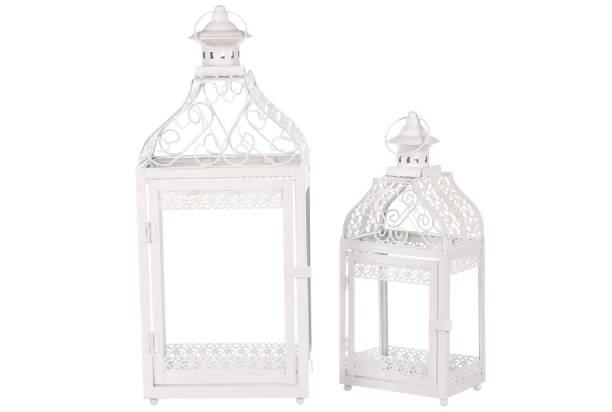 Sada 2 kovových luceren v bílé barvě v romantickém stylu vykouzlí ve Vašem domově tu správnou atmosféru.