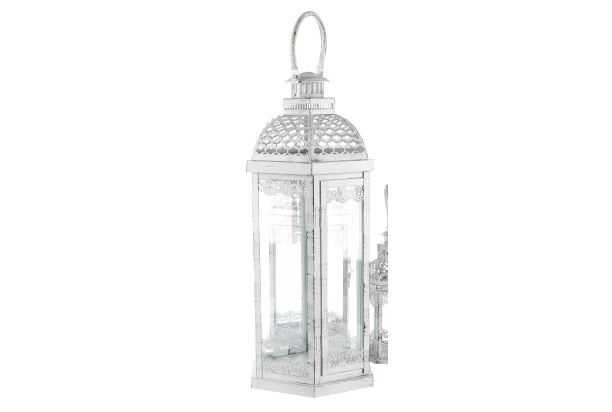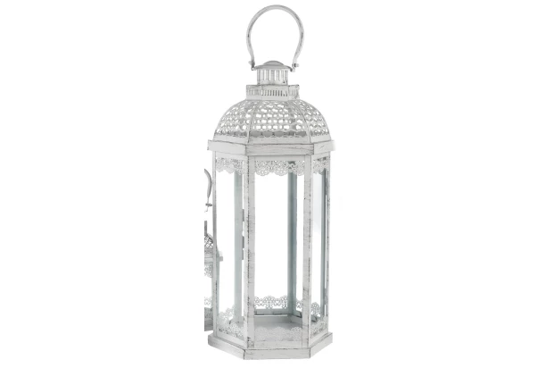 Kovová lucerna v bílé barvě v romantickém stylu vykouzlí ve vašem domově tu správnou atmosféru. Výška 58 cm.