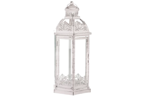 Elegantní kovová lucerna v bílé barvě je dokonalým doplňkem pro váš domov, který dodá interiéru romantický nádech. Výška 49 cm.