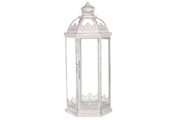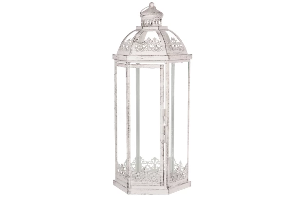 Elegantní kovová lucerna v bílé barvě je dokonalým doplňkem pro váš domov, který dodá interiéru romantický nádech. Výška 63 cm.