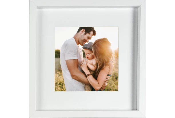 Dřevěný fotorám na 8 fotografií – 3× 15×24 cm a 2× 14×14 cm. Rám v bílém provedení skvěle doladí každou stěnu.