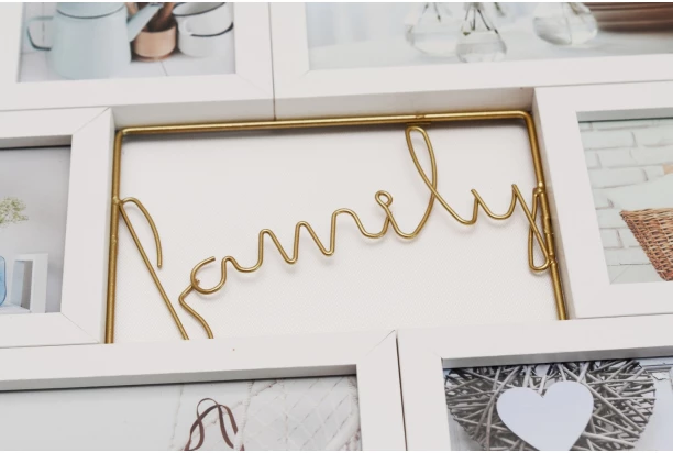 Dřevěný fotorám Family na 6 fotografií – 2× 13×18 cm a 4× 10×15 cm pro Vaše rodinné snímky. Rám v bílém provedení skvěle doladí každou stěnu a zútulní Váš domov.