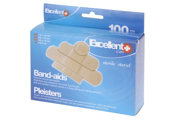Voděodolné náplasti ve 4 velikostech na drobná poranění, která brání vniknutí vody do rány. Balení obsahuje celkem 100 ks.