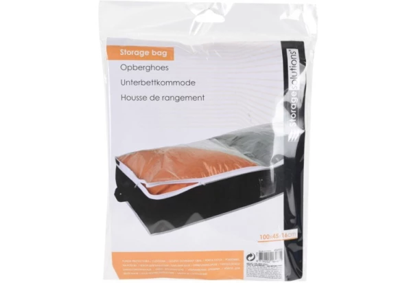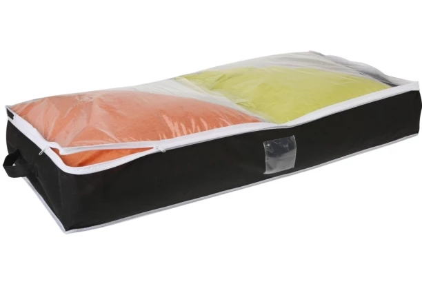 Praktický úložný vak se díky svému podlouhlému tvaru dobře vejde pod postel nebo pohovku, ale lze také uložit do skříně. Taška poskytuje více úložného prostory a chrání obsah před prachem a nečistotami. Úložný box je vhodná jako náhradní skladovací prostor pro momentálně nepoužívané oděvy a další bytový textil. Díky průhledovému oknu vždy víte, co je uvnitř. Organizér má rozměr 100×16×45 cm.