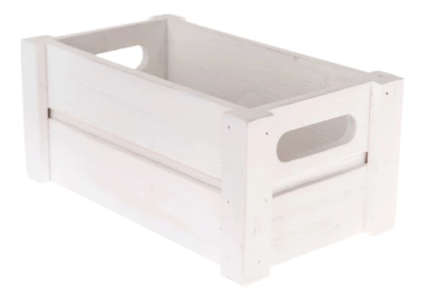 Dřevěná bedýnka v bílém provedení poslouží pro praktické skladování různých věcí, ale i jako dekorační doplněk do interiéru. Úložný box má 2 úchyty, díky kterým jej lze snadno přenášet a lze ho také využít jako přepravku. Rozměr 21,5×12,5×9,5 cm.