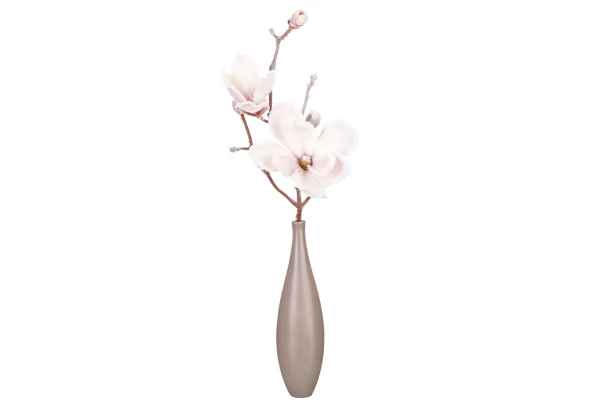 Působivá umělá květina magnolie v růžové barvě se zasněženým efektem je skvělým dekorativním doplňkem vánoční výzdoby. Květinová dekorace obohatí Váš sváteční interiér, nikdy neuvadne a dodá domovu nádech elegance, klidu a romantiky. Její krása vynikne ve váze na svátečně prostřeném stole či jiném viditelném místě. Výška 50 cm.