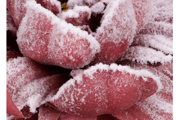 Působivá vánoční dekorace pivoňka v hnědé barvě vnese do interiéru zimní náladu. Umělý květ je vybaven klipem, který umožňuje snadné připevnění na vánoční stromeček, větev, věnec nebo jinou vánoční dekoraci. Efekt zasněžení přidává květině jedinečný a pohádkový vzhled. Ozdobu můžete použít samostatně nebo ji kombinovat s dalšími vánočními dekoracemi. Velikost 14 cm.