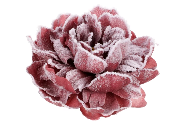 Vánoční dekorace Zasněžená pivoňka na klipu 14 cm, hnědá