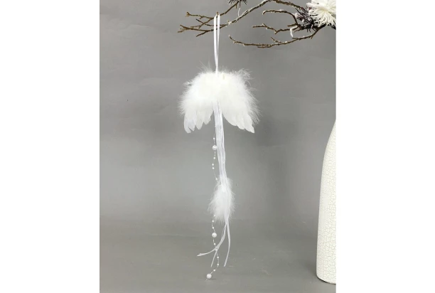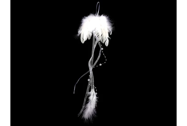 Andělská křídla z peří v bílé barvě skvěle ozdobí vánoční stromeček, okno, dveře, věnec nebo třeba stůl. Andělský motiv přidává do prostoru pocit klidu a lásky. Ať už tuto dekoraci zavěsíte kamkoliv, do Vašeho domova přinese vánoční atmosféru a doladí sváteční výzdobu. Velikost 30 cm.