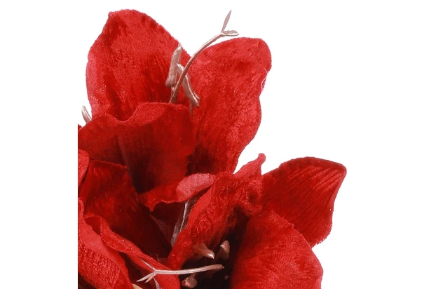 Působivá umělá květina amarylis (hvězdník) v červené barvě je skvělým dekorativním doplňkem vánoční výzdoby. Květinová dekorace obohatí Váš sváteční interiér, nikdy neuvadne a dodá domovu nádech elegance, klidu a romantiky. Její krása vynikne ve váze na svátečně prostřeném stole či jiném viditelném místě. Výška 44 cm.