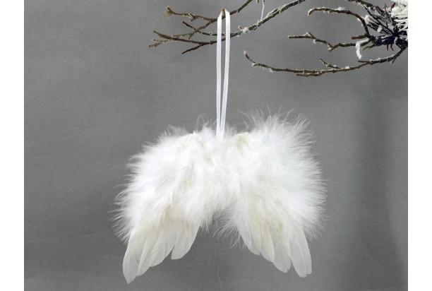 Vánoční dekorace/ozdoba Andělská křídla z peří 8 cm, bílá