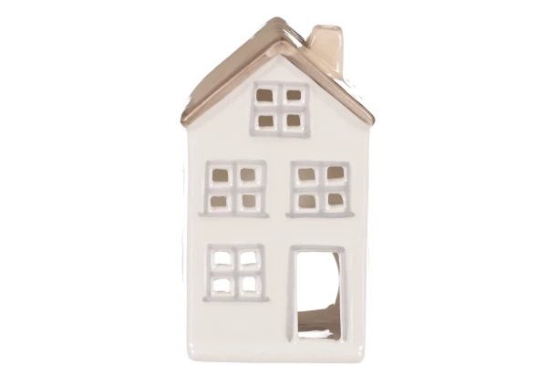 Vánoční keramický svícen ve tvaru domečku v krémové barvě je krásnou a slavnostní dekorací do každého domova. Po zapálení čajové svíčky vytvoří příjemnou atmosféru. Jemné světlo prochází skrz malá okénka a na stěnách tak vzniká zajímavá hra světelných stínů. Svícen na čajovou svíčku se stává středem pozornosti, ať už je umístěn na stole, poličce nebo okně. Jeho netradiční provedení přitahuje pohledy, vyvolává obdiv a dodává interiéru nádech elegance. Výška 14,5 cm.