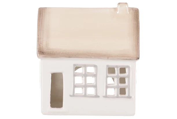 Vánoční keramický svícen ve tvaru domečku v krémové barvě je krásnou a slavnostní dekorací do každého domova. Po zapálení čajové svíčky vytvoří příjemnou atmosféru. Jemné světlo prochází skrz malá okénka a na stěnách tak vzniká zajímavá hra světelných stínů. Svícen na čajovou svíčku se stává středem pozornosti, ať už je umístěn na stole, poličce nebo okně. Jeho netradiční provedení přitahuje pohledy, vyvolává obdiv a dodává interiéru nádech elegance. Výška 12,5 cm.