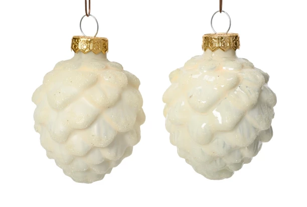 Vánoční ozdoby (6 ks) Šišky, krémové třpytivé, sklo