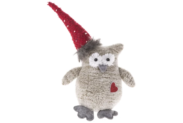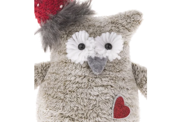 Plyšová sova v šedé barvě s červenou čepičkou a srdíčkem vnese do Vašeho domova dobrou náladu a skvěle dotvoří vánoční atmosféru.