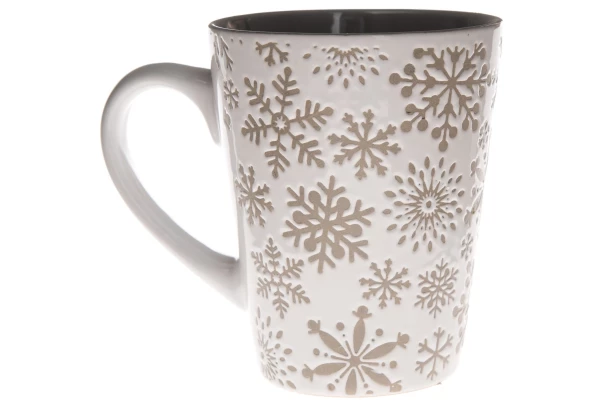 Hrnek o objemu 320 ml je ozdoben sněhovými vločkami, a proto je ideálním doplňkem pro Váš vánoční stůl. Hrnek je bílý, ale motiv a vnitřek je hnědý, což dodává kontrast a zajímavý designový prvek. Vychutnejte si svou oblíbenou kávu, čaj nebo třeba horké kakao a nalaďte se na Vánoce.