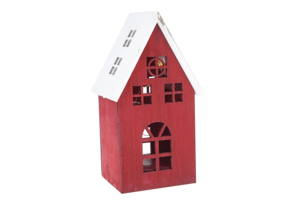 Červený domek s bílou střechou kombinuje eleganci dřeva s jemným a příjemným osvětlením. Právě jeho precizní detaily mu dodávají zvláštní kouzlo. Stačí zapnout LED světlo a sledovat, jak se domeček zářivě rozzáří, vytvářející magickou atmosféru především v tlumeném osvětlení. Tento domek je ideální jako vánoční dekorace, která dotvoří útulné prostředí během svátků.