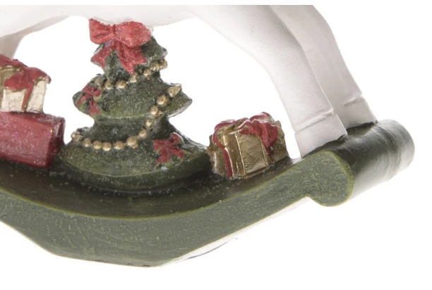 Vánoční dekorační soška houpací kůň s drobnými dárky navodí sváteční atmosféru v každém interiéru. Ať už jako dekorace na stůl, na okenní parapet nebo jako doplněk k Vaší sbírce vánočních dekorací, tato dekorativní figurka je opravdovým poutačem pro oči. Nostalgická vánoční dekorace je navržena v klasickém retro stylu, barevná kombinace bílá, zelená a červená dodává houpacímu koni nadčasovou eleganci.