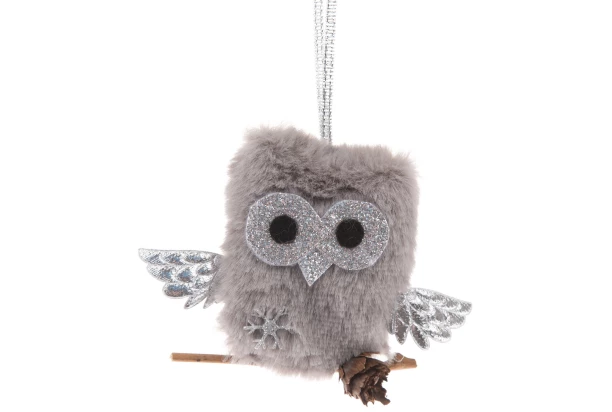 Vánoční dekorace/ozdoba Závěsná plyšová sova, šedá