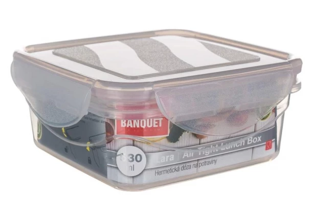 Hermetická plastová dóza o objemu 0,53 l s růžovým silikonovým těsněním. Potraviny zůstávají dlouho čerstvé a bez zápachu.
