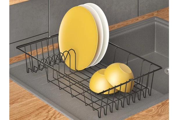 Odkapávač nádobí v černé barvě je praktický pomocník do kuchyně, který zjednoduší sušení talířů, hrnků a skleniček. Díky exkluzivní povrchové úpravě Lava TouchTherm je odkapávač vysoce odolný proti korozi i nárazu a navíc je antistatický.
