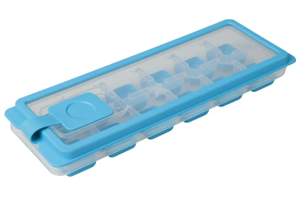Praktická forma na ledové kostky s víkem, které má navíc i otvor na nalévání vody. Zásobník na led je vyroben z plastu se silikonovým dnem pro snadné vyjmutí kostek. Uzavíratelná forma umožňuje přípravu 12 kostek ledu, které lze využít na vodu, nápoje i alkoholické nápoje. Nádoba je k dostání v několika barvách, zasílány jsou náhodně. Rozměr 26×4×9 cm.