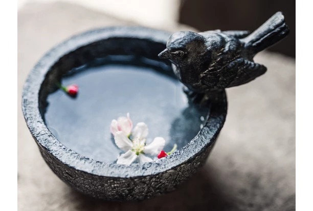 Krmítko pro ptáčky z polyresinu v podobě elegantní šedé misky s ptáčkem, který sedí na jejím okraji, zpestří vaši zahradu, ale i terasu či okenní parapet. Toto krmítko slouží jako dekorace i jako zdroj potravy pro vaše ptačí přátele. V horkých letních dnech může být též vítaným zdrojem osvěžení, když se krmítko promění v pítko nebo bazének. Do misky stačí nasypat pár dobrot nebo nalít čerstvou vodu, umístit ji na vhodné místo a pak už můžete nenápadně pozorovat, jak si ptáci spokojeně hodují a tím i sami relaxovat.