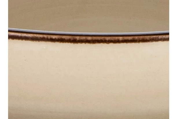 Elegantní hluboký talíř v krémové barvě s tmavě hnědým lemem se hodí do každého přírodně laděného interiéru. S průměrem 18 cm je ideální pro podávání polévky, salátu, těstovin, či ovoce a zeleniny. Polévkový talíř je vyroben z odolné keramiky a je vhodný pro každodenní použití.