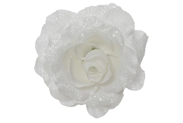 Vánoční ozdoba Růže na klipu 12 cm, bílá