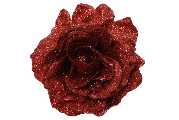 Vánoční ozdoba Růže na klipu 12 cm, červená