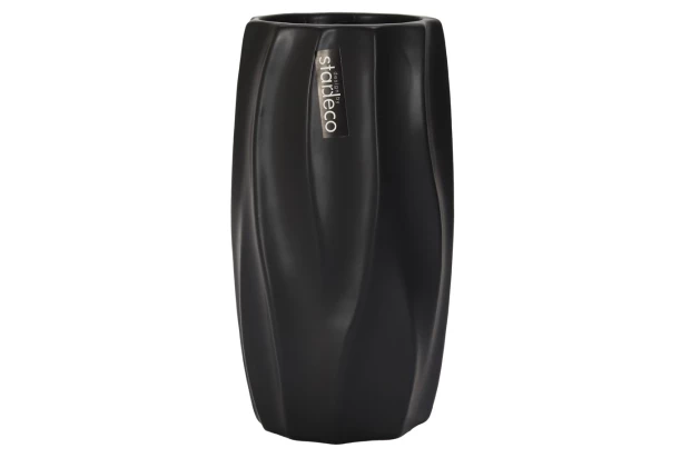 Tato nádherná keramická váza v černé barvě přináší do interiéru nádech elegance a luxusu. S výškou 19,5 cm je ideální pro vystavení vašich oblíbených květin nebo jako samostatný dekorativní prvek, který přitáhne pozornost. Moderní design s jemnými vlnitými detaily dodává této váze unikátní vzhled, který se hodí do každého interiéru. Kvalitní keramika zaručuje dlouhou životnost a odolnost. Tato váza je perfektním doplňkem pro váš domov nebo jako dárek pro vaše blízké.