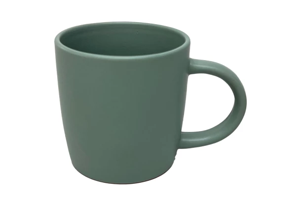 Hrnek v matně šalvějové zelené barvě o objemu 380 ml je ideální pro pořádnou porci kávy, čaje nebo třeba horké čokolády se šlehačkou.