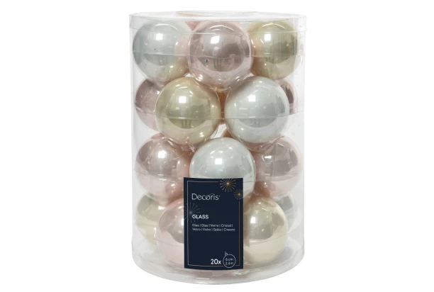 Vánoční ozdoby (20 ks) Skleněné koule, mix růžová/bílá/šampaň