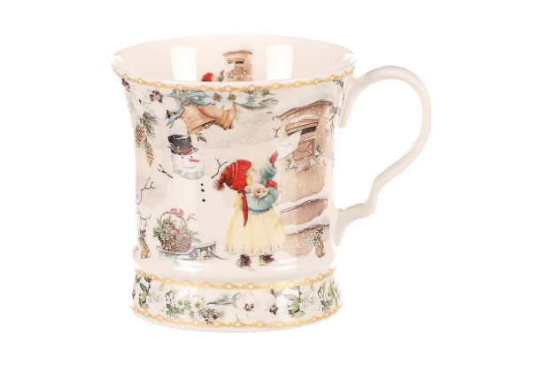 Krásně malovaný porcelánový hrneček v elegantní dárkové dóze potěší vaše blízké během Vánoc. Zimní motiv, doplněný obrázkem veselého sněhuláka a holčičky, se bude na vaší poličce nebo stole skutečně vymykat. Tato sada je ideální pro sváteční období, ať už jako dárek, nebo pro přidání slavnostního nádechu do vaší kuchyně.