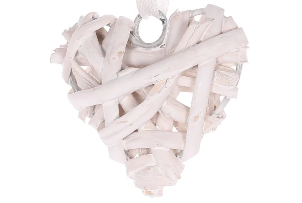 Závěsná dekorace Srdce proutěné, bílá