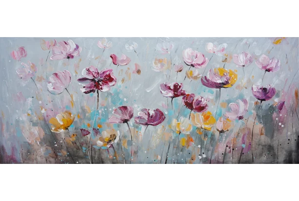 Ručně malovaný obraz Květinová louka 140x60 cm, olejomalba