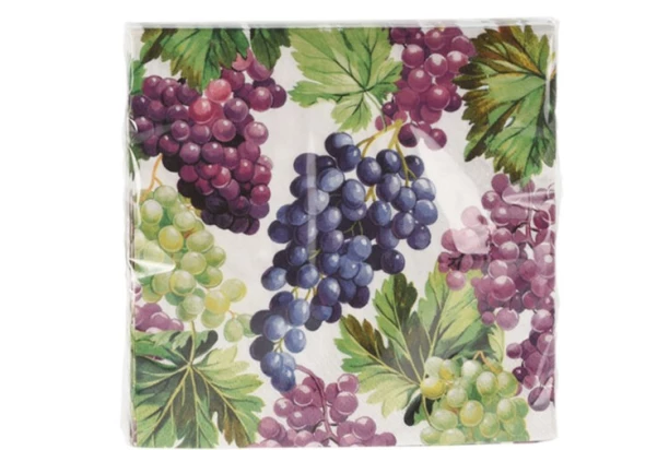 Oživte svůj stůl s touto sadou ubrousků, které vnesou do vaší kuchyně ovocnou svěžest. Tyto ubrousky mají nádherný potisk granátového jablka nebo hroznového vína, který dodá vašemu stolování hravý a barevný nádech. Sada obsahuje 16 ks.