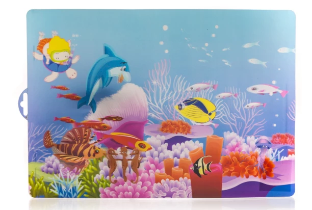 Veselé prostírání s hravým podmořským motivem zpříjemní každé dětské stolování. Lehký a odolný plast usnadňuje manipulaci, zatímco snadná omyvatelnost zajišťuje praktické využití každý den. Rozměr 43×29 cm.