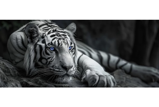 Panoramatický obraz tištěný na plátně o rozměru 140×60 cm se stane dominantním prvkem jakéhokoli interiéru. Černobílý motiv majestátního tygra doplňují pronikavě modré oči, které okamžitě přitáhnou pozornost a zvířeti dodávají mystický až nadpozemský vzhled.